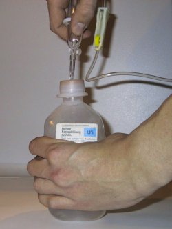 Nach entfernen der Kanüle kann die vorbereitete Infusion angeschlossen